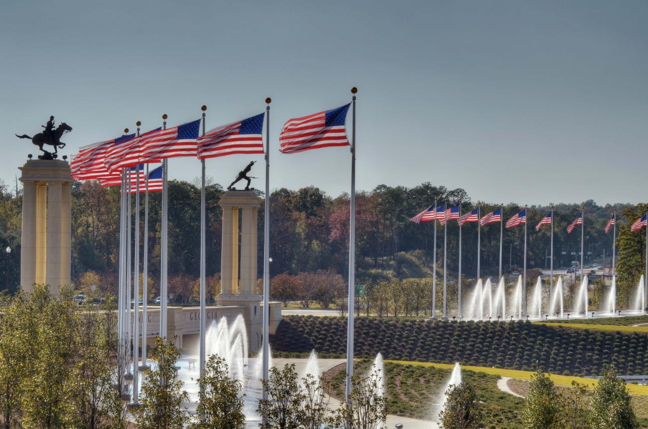 A vision for a Fort Benning Gateway began in 2005. The vision was to build a bold, powerful lasting tribute to honor our United States Military. The Gateway was to be grand in scale, and its symbolic design should reflect power and pride for our military. The completed Gateway is a result of a collaborative effort between Design Professionals, State and Local Government, Georgia Department of Transportation, Contractors and Fort Benning, Georgia. Ten years later as a result of fulfilling this vision, a magnificent “Gateway” welcomes all into Fort Benning, Georgia.
